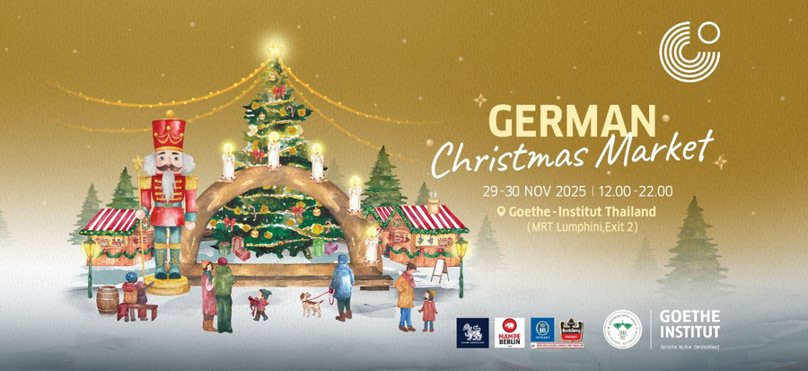 มาร่วมเทศกาลเฉลิมฉลองด้วยตลาดคริสต์มาสซึ่งเป็นไปตามที่สถาบันเกอเธ่ ประเทศไทยได้รับร่วมกับมูลนิธิวัฒนธรรมไทย-เยอรมัน (มูลนิธิวัฒนธรรมไทย-เยอรมัน: TDKS) นำเทศกาลประเพณีและเป็นที่รักยิ่งของชาวเยอรมันกลับมาสู่กรุงเทพมหานครอีกครั้งพร้อมกับเชิญชวนทุกท่านร่วมเทศกาลแห่งความสุขนี้ที่ตลาดคริสต์มาสเยอรมันประจำปี 2568